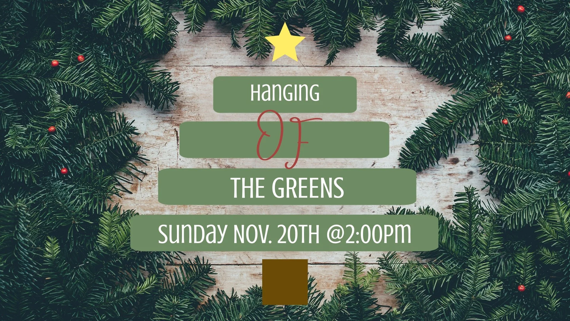 Hanging of the Green Sunday, November 20, 2022 2:00 PM 4:00 PM 14:00 16:00 First Baptist Church 701 Court Street Fulton, MO, 65251 (map) Google Calendar ICS